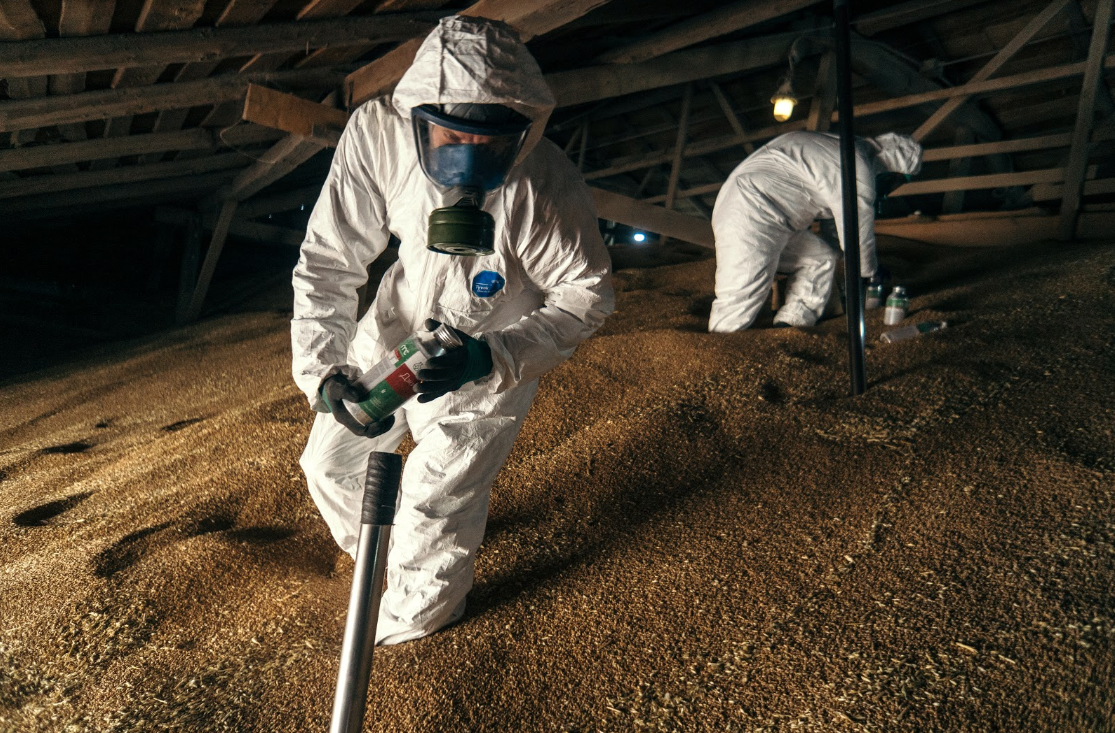 В дополнение к мониторингу рисков заражения плесенью, CO₂ используется и в качестве фумиганта. Насекомые обычно погибают быстрее от углекислого газа, чем от недостатка кислорода. Концентрация 6% углекислого газа истребит более 95% вредоносных микроорганизмов после 4 дней воздействия при 27°C или выше. Для полного уничтожения необходимы более длительные периоды и более высокие концентрации CO₂ — выше 35%.